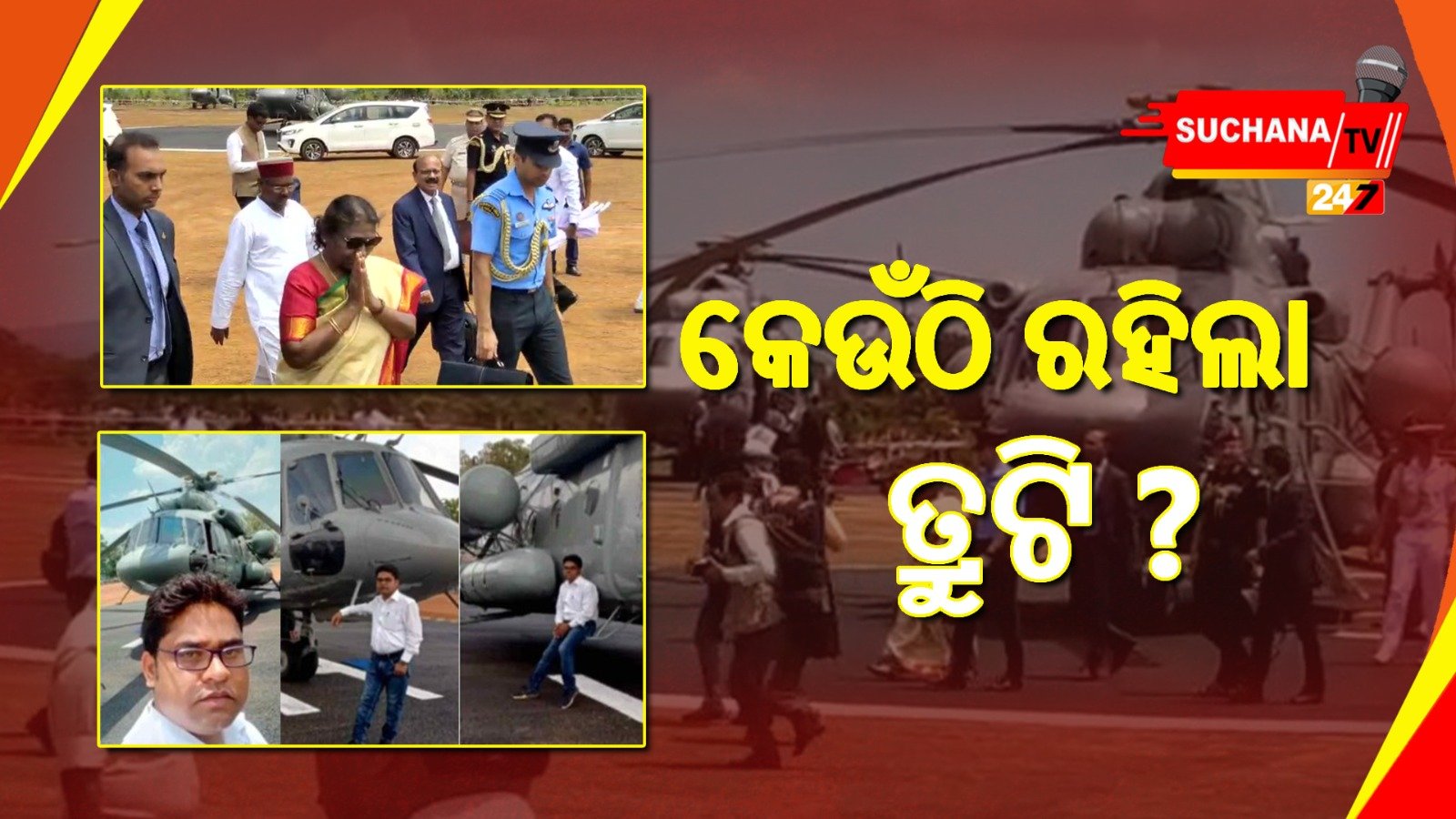 ରାଷ୍ଟ୍ରପତିଙ୍କ ତିନିଦିନିଆ ମୟୂରଭଞ୍ଜ ଗସ୍ତ ବେଳେ ତାଙ୍କ ସୁରକ୍ଷା ବ୍ୟବସ୍ଥାରେ କିଛିଟା ତ୍ରୁଟି ହୋଇଥିବା ଜଣାପଡ଼ିଛି । ଜଣେ ଫାର୍ମାସିଷ୍ଟ ରାଷ୍ଟ୍ରପତିଙ୍କ ଗସ୍ତ କାର୍ଯ୍ୟକ୍ରମରେ ନିୟୋଜିତ ହେଲିକପ୍ଟର ପାଖକୁ ଯାଇ ସେଲ୍ଫି ନେଇଥିଲେ । ଏଥିସହ ସେଥିରେ ବସି ଫଟୋ ବି ଉଠାଇଥିଲେ । ସେ ଏହି ଫଟୋଗୁଡ଼ିକୁ ତାଙ୍କ ଫେସ୍ବୁକ୍ ଆକାଉଣ୍ଟରେ ପୋଷ୍ଟ କରିଥିଲେ । ହେଲେ ଯେତେବେଳେ ବିବାଦୀୟ ସ୍ଥିତି ଉପୁଜିଲା ସେ ଫେସବୁକରୁ ଫଟୋଗୁଡ଼ିକୁ ଡିଲିଟ୍ କରି ଦେଇଛନ୍ତି । ଏହି ଫାର୍ମାସିଷ୍ଟଙ୍କ ନାଁ ଯଶବନ୍ତ ବେହେରା।