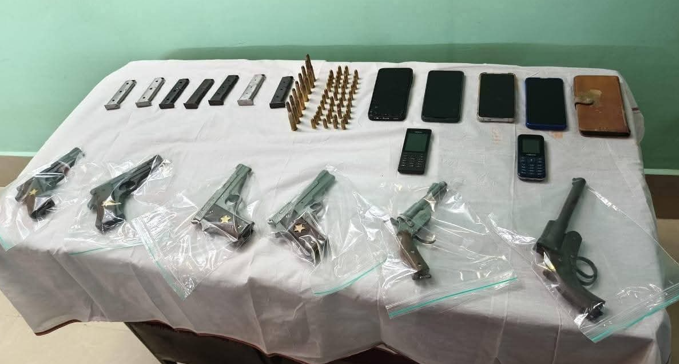 ଗଞ୍ଜାମ ଜିଲ୍ଲା ଶେରଗଡ଼ ଥାନା ଅନ୍ତର୍ଗତ ଧନନ୍ତର ପଞ୍ଚାୟତ ସୁନାନ୍ତର ଗାଁର ନିରଞ୍ଜନ ଜେନା ଓରଫ କାଳିଆ ଜେନାଙ୍କୁ ବୋମା ଓ ଗୁଳିମାଡ଼ ଘଟଣାରେ ୬ ଅଭିଯୁକ୍ତଙ୍କୁ ଗିରଫ କରିଛି ପୋଲିସ। ଗିରଫ ଅଭିଯୁକ୍ତଙ୍କ ଠାରୁ ୬ଟି ପିସ୍ତଲ, ୪୦ ଟି ଜୀବନ୍ତ ଗୁଳି, ୭ଟି ମଗାଜିନ, ୭ଟି ମୋବାଇଲ ସହ ଗୋଟିଏ ହୋଣ୍ଡା ବାଇକ୍ ଜବତ କରିଛି ପୋଲିସ । ସୂଚନା ଅନୁଯାୟୀ, ଜୁଲାଇ ୨୫ ତାରିଖ ସନ୍ଧ୍ୟାରେ ହୋଇଥିବା ଗୁଳିକାଣ୍ଡର ପର୍ଦ୍ଧାଫାଶ କରିଛି ଗଞ୍ଜାମ ପୋଲିସ ।